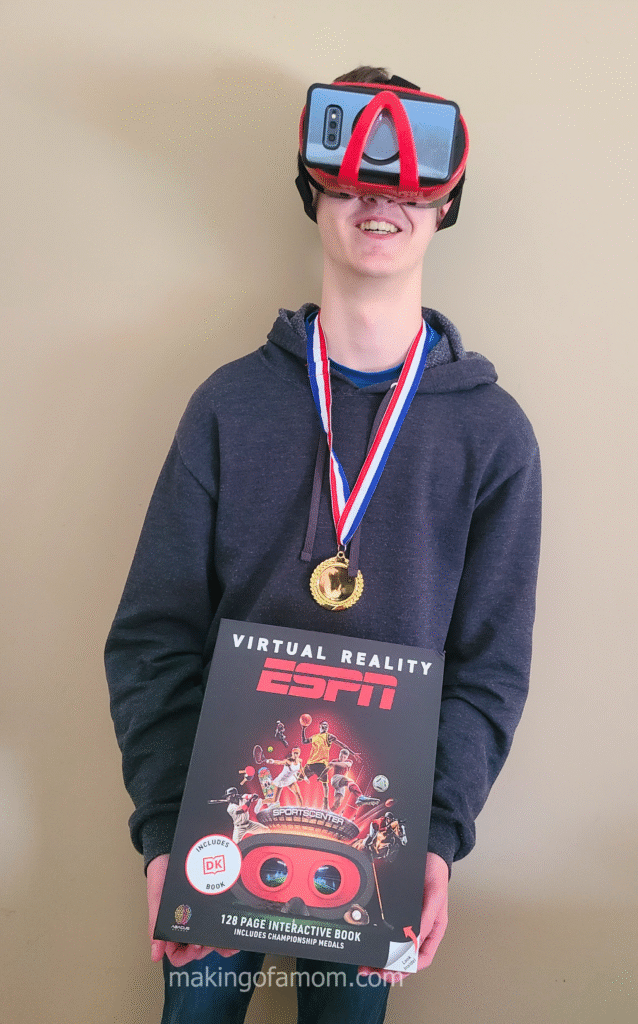 The ESPN Virtual Reality box includes 3 championship medals – Gold, Silver and Bronze, an impressive 128 page book filled with some many sports and 20+ vr experiences, it’s incredible, and the VR headset. After downloading the app and getting it set up you are ready to sit in the driver seat to learn about so many sports. The box is $59.99. Within the app you can purchase additional experiences like Dinosaurs, the Human Body and more.