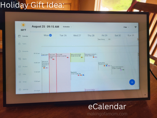 This is an incredible digital calendar by eCalendar. It is beautiful to look at. Set up is easy. Through their app you can sync this calendar with the calendar you previously have been using (Google, Microsoft, etc) or you can just start from scratch. We have set up profiles for everyone in my house so the calendar is beautifully organized with all the colors. It’s easy to see who needs to be where or what is going on with each family member.