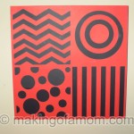 The Back Story Now that our son is 3 months old we decided that he was ready to graduate from the checker board pattern to more advanced geometric shapes. We also decided to add some color. In my wife's college human development class, she learned that when babies are first born they can only see black, white and red. The checker board pattern that we made was just black and white, this one will be red and black, and instead of just squares we have rectangles, circles and chevrons.Baby … [Read more...]