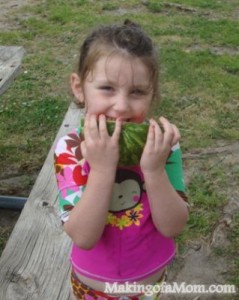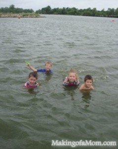 One of our favorite places this summer has been the lake. We go out and swim, barbeque and eat watermelon! We’ve gone with my sister and her kids and we’ve gone with Grandma and Grandpa. Their Uncle has also taken them a couple of times with their cousins.