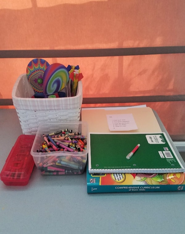 My son in first grade used to come home from school on Monday’s and tell me all about the prizes he picked in the class “store.” He would earn tickets and get to “shop” once a week. Since he loved this, and I know bribes can be effective, I decided to implement this at home. Instead of handing out tickets, the “ticket” is completing your whole days work without complaining. I will help as needed, and I do need to set up some of the online things they do for school but no complaining!