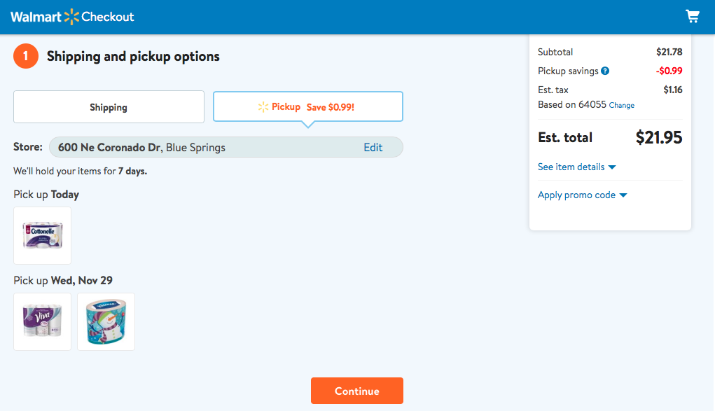 - Stock up on the essentials. With special meals planned and extra guests in the house it means you’ll need extra paper towels, toilet paper and facial tissues. Be prepared! I love that by shopping for these things at Walmart.com I can get free two day shipping so I don’t have to leave my house,OR get in store pick up where I just sit in a comfy chair and they bring all the items to me. I usually pick this option because I’m out and about anyways.