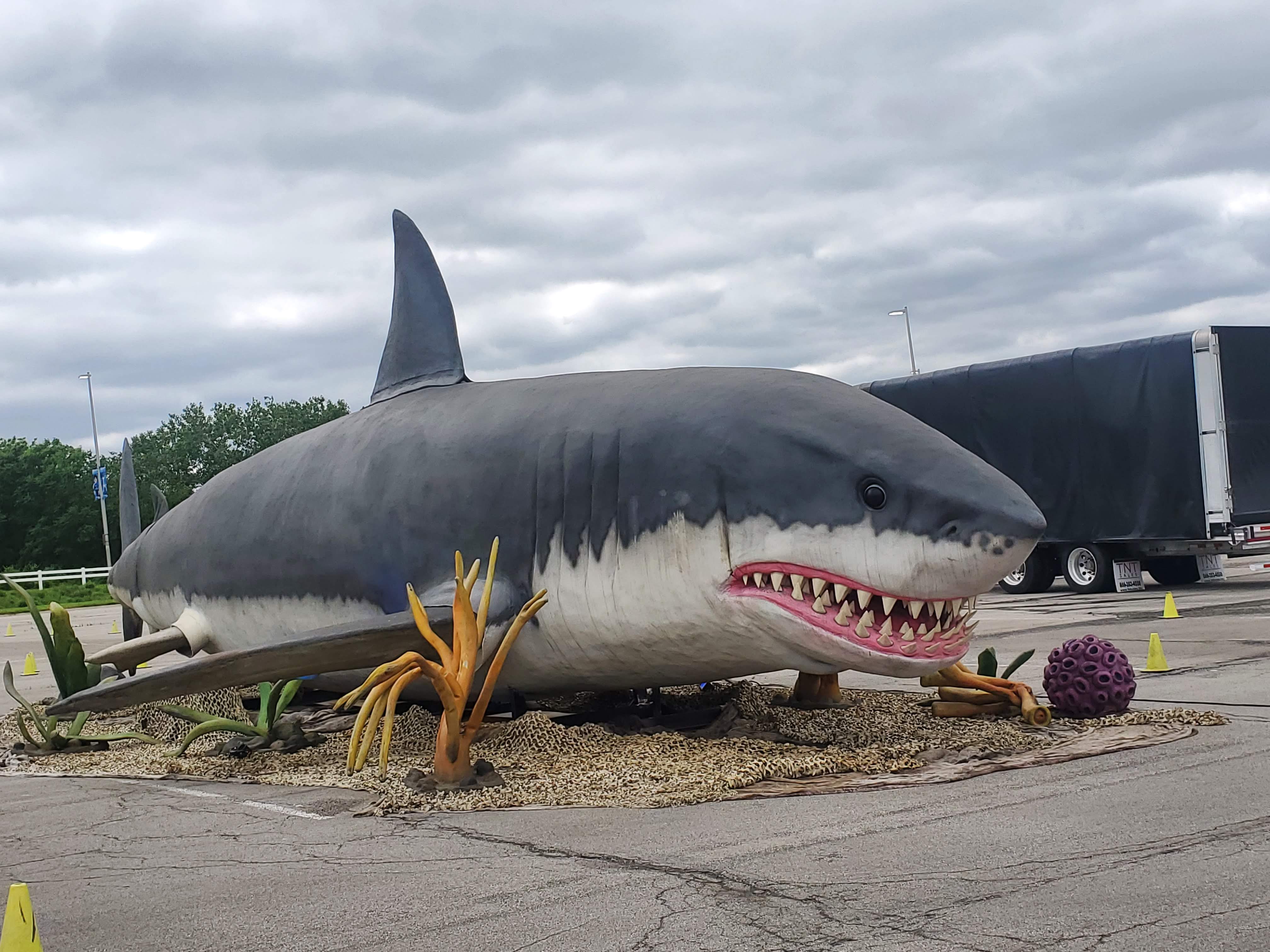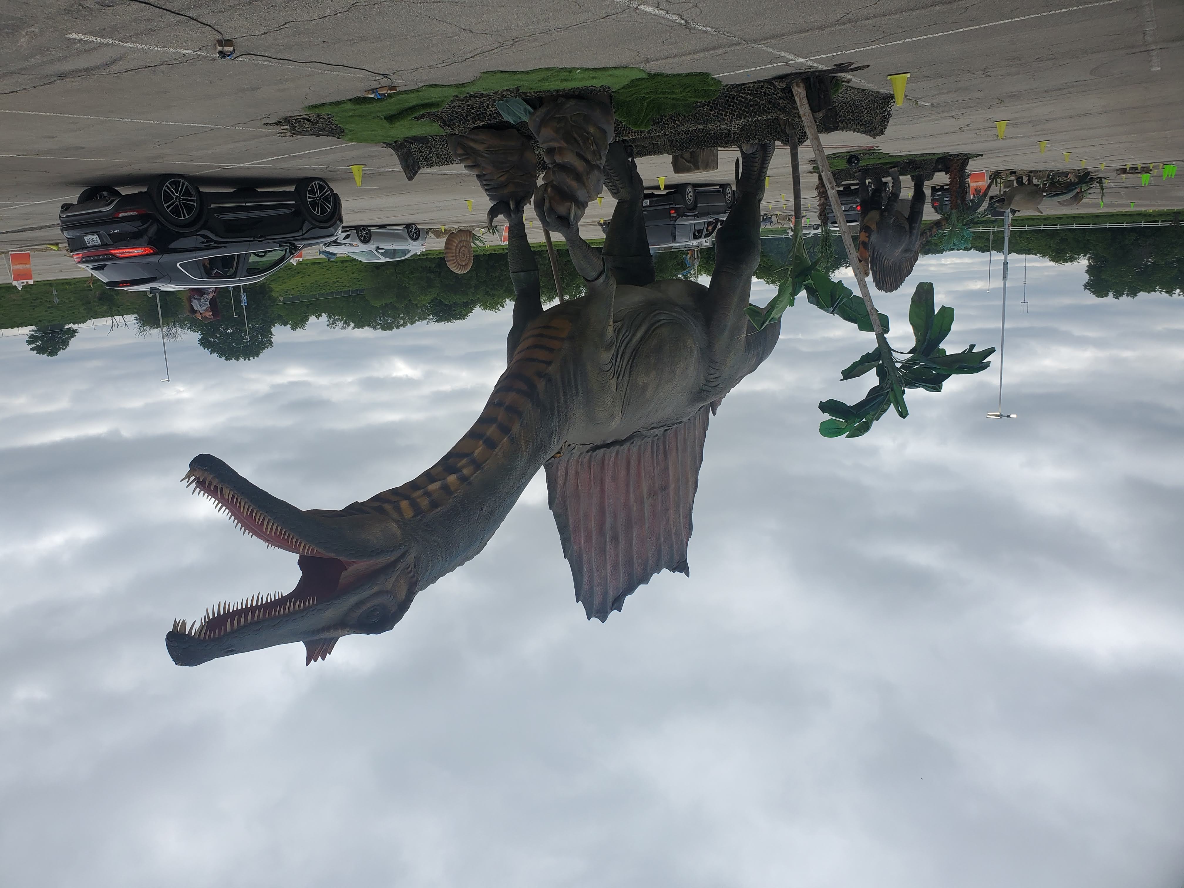 Jurassic Quest game to the parking lot near Arrowhead stadium. It’s a drive thru experience. Listening on our phone, bluetoothed through our car speakers we learned about the different time periods of dinosaurs and about some specific dinosaurs. We went in the early afternoon so it wasn’t too busy. The speed limit is 5mph so I let me kids unbuckle so they could move to where they could see everything the best.