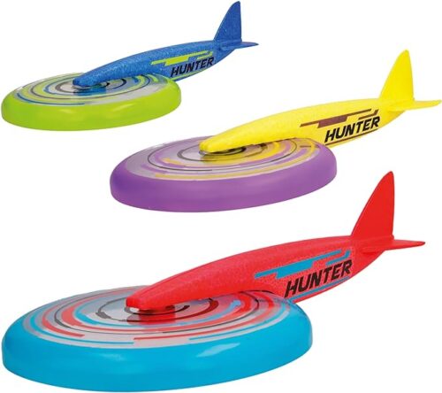Jet Disc from IMC Toys come in two different sizes, 5.9″ and 9″. This is a fun way to get PE in at home. These amazing disc fly through the air with a smooth gliding motion with the glider tail attached to the frisbee. It makes it easier for the kids to catch in my opinion and keep the game going longer. There may have been some discussion of physics between the boys while we played.