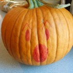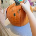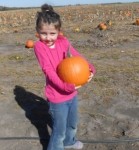 Finally, we grab a wagon and walk out to the pumpkins. We peruse the patch until we find just the right one, and then we get to cut it right off the vine!