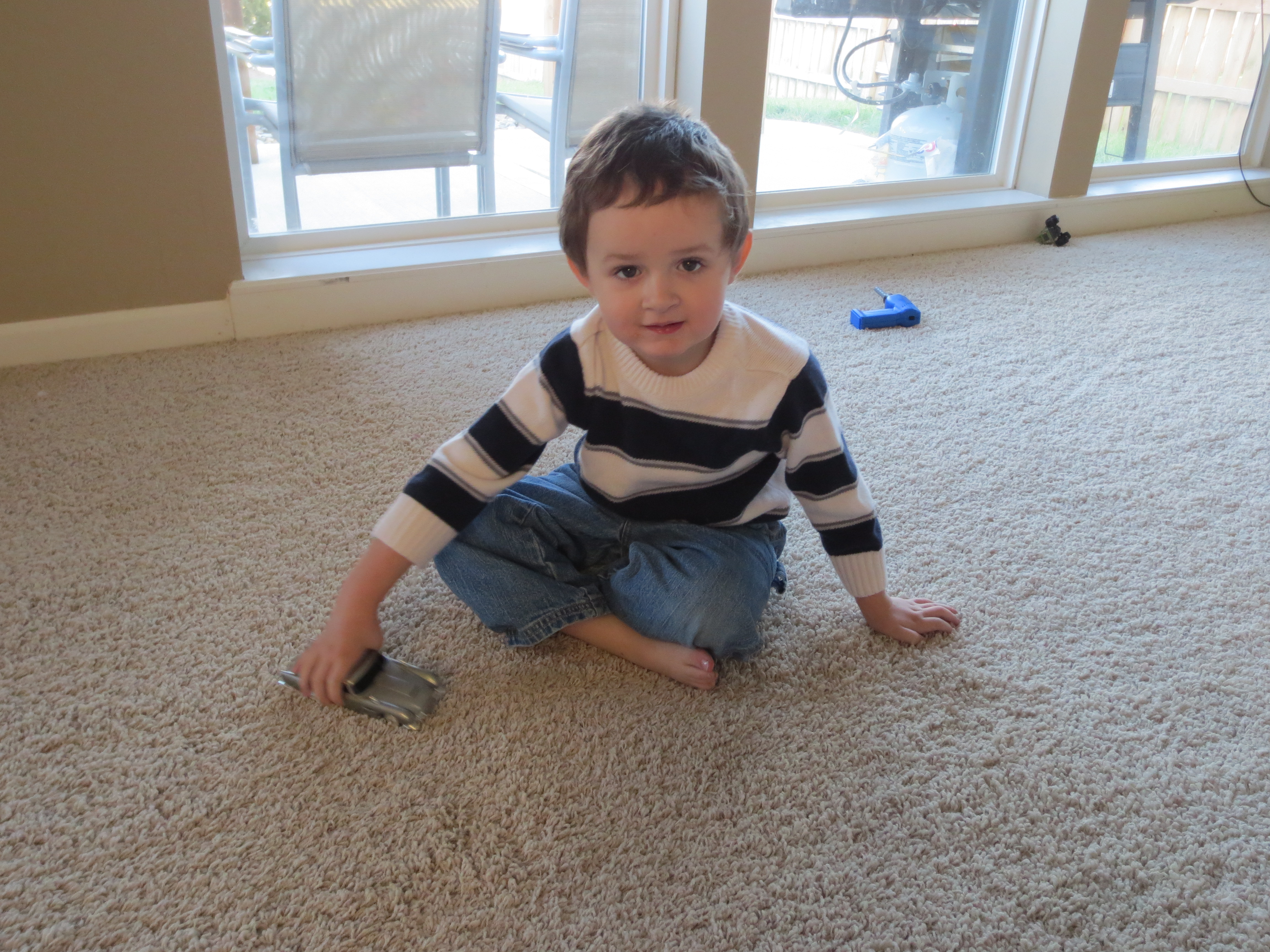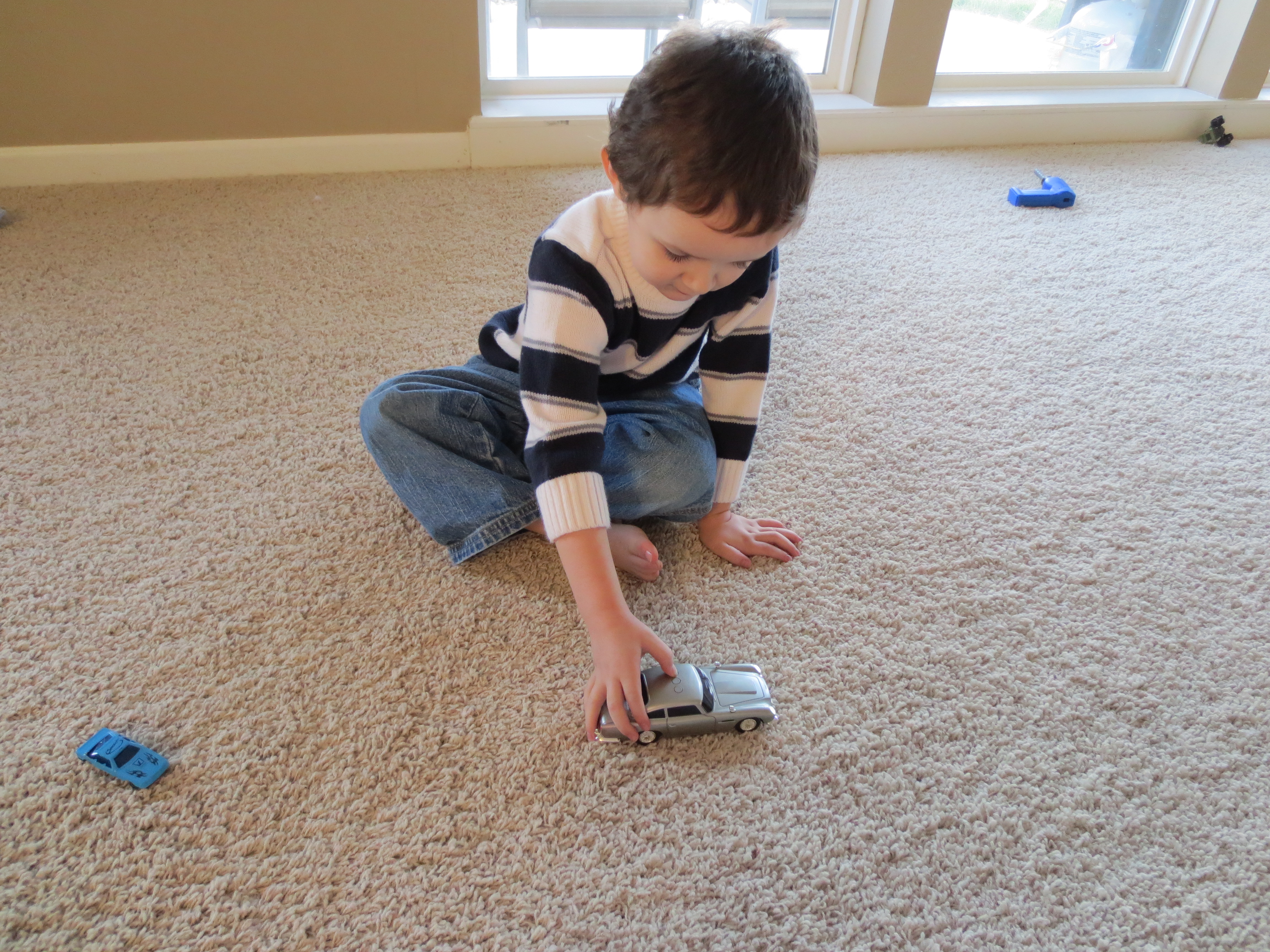 Why is this car his favorite? Lots of reasons. First it looks cool, and he loves race cars! This definitely looks like a race car. Second there are 3 buttons on the top of the car opening a whole world of fun. One of the buttons plays the beginning of the 007 theme song. Another plays the rest of the theme song as well as honks. The last button revs up the engine and then the car