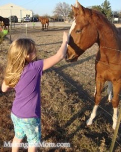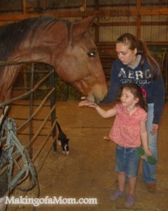 patient with my girls- I was really impressed! They showed my girls where and how to pet, brush, feed, etc and my girls loved every second of it! They aren’t ready to be in the main pen with all of the horses, but they are comfortable with one or two of them.