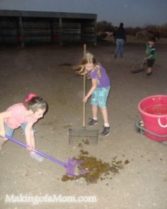 At the end of the evening, Rose said, “Hey girls! Do you want to help scoop the poop?!” And my girl’s were surprisingly excited to do it! They actually jumped for joy…