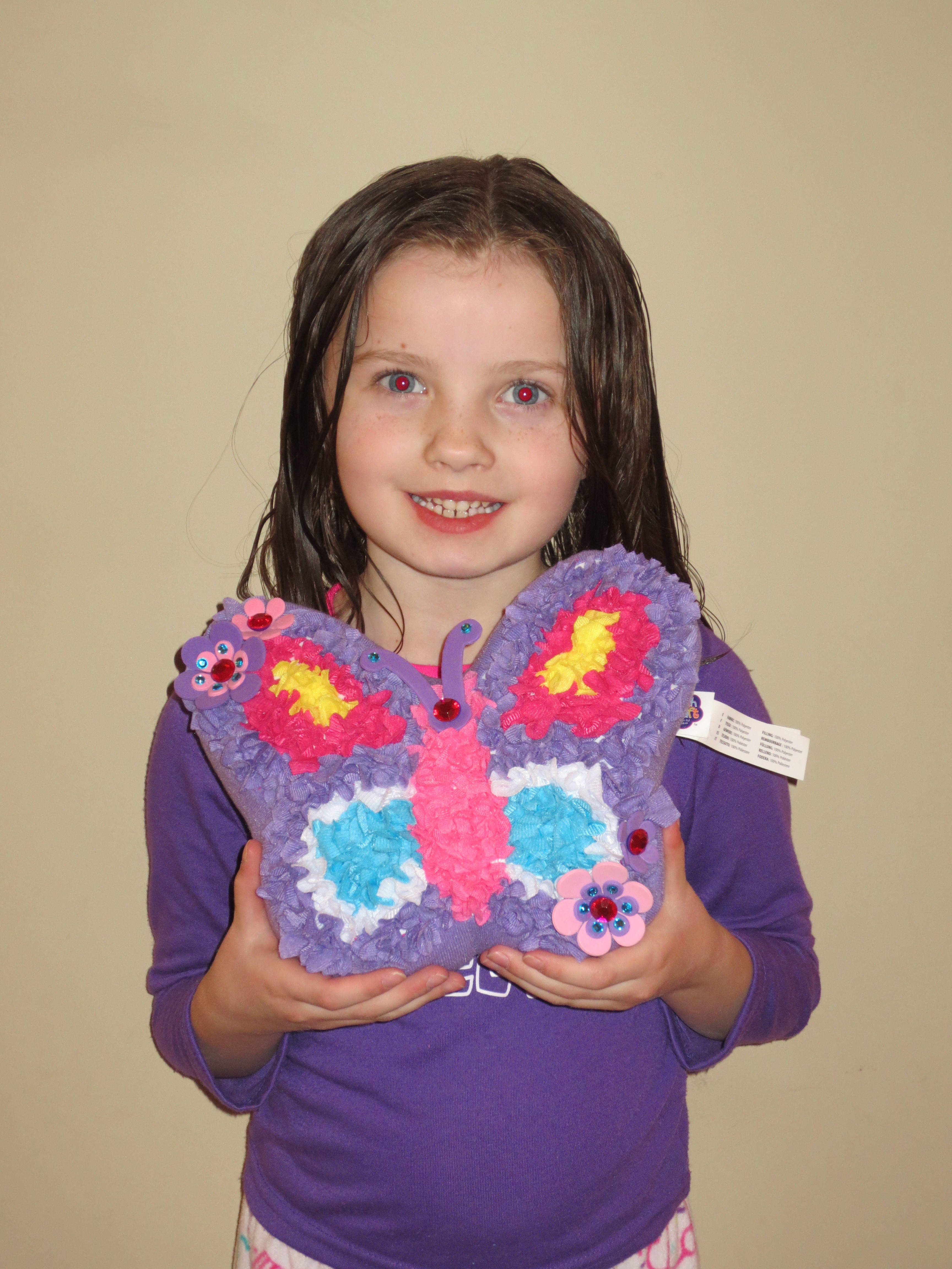When I opened the box and she saw the butterfly pillow she wanted to get started right away. She has been talking non-stop about how she will make the pillow and where it will go in her room and which doll will get to use it.